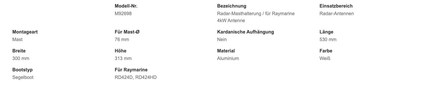 Radar-Masthalterung für 4kW / M92698